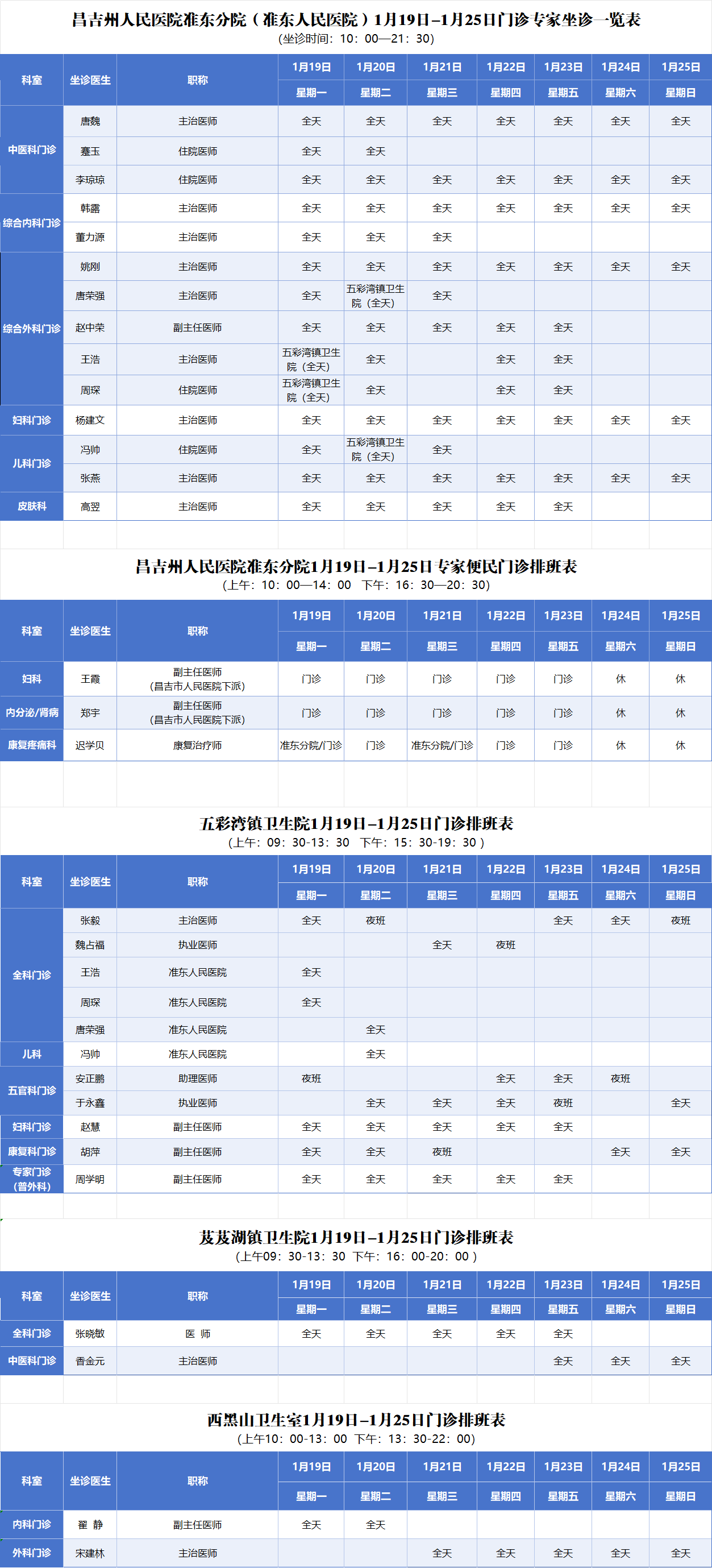 【健康福音】准东开发区公立医疗机构门诊排班(1.19-1.25)