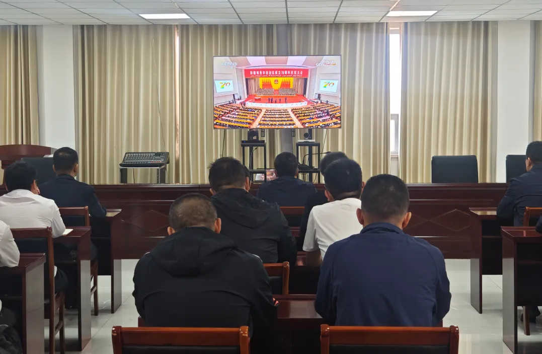 9月25日上午,新疆维吾尔自治区成立70周年庆祝大会在乌鲁木齐隆重举行。陕能新疆能源开发有限公司迅速组织全体干部职工集中收看大会直播,共同见证这一具有重大历史意义的时刻。