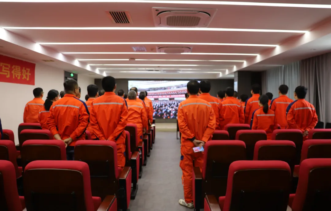 庆祝大会的现场,气氛热烈而庄重。庄严的仪式流程、从各级领导讲话到基层代表发言,无不深深触动着公司每一位员工的心弦,让大家心潮澎湃。