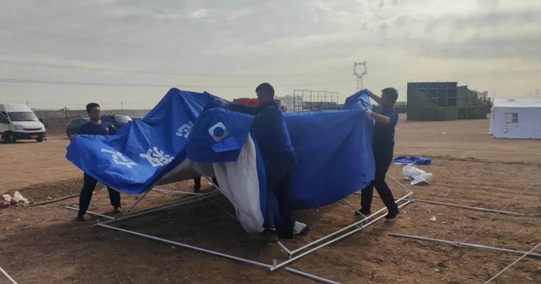 演练现场,群众疏散转移安置科目需搭建20顶帐篷。开发区应急救援中心迅速响应,立即协调矿山救护中队从应急物资库调运帐篷。物资在25分钟内送达现场,16名救援人员分成4组,仅用1.5小时就完成了全部帐篷的搭建与防风加固工作。高效有序的执行力,赢得了现场指挥人员的高度肯定。