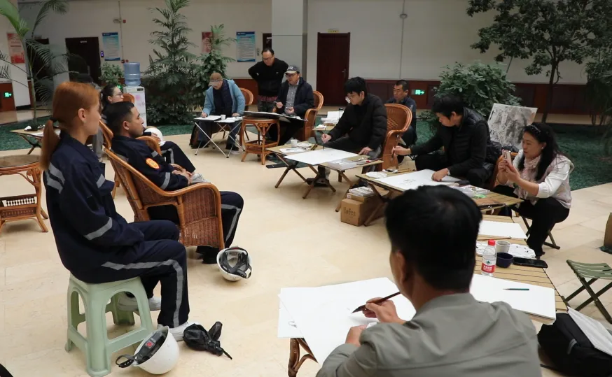 在新疆国泰新华矿业股份有限公司和新疆宜化化工有限公司的写生现场,企业特别选派先进职工、劳模和少数民族员工作为模特,配合艺术家写生,这些鲜活的人物形象成为艺术家笔下生动的创作素材。福建省美协副主席、福建省画院名誉院长张永海在创作间隙感慨:“这些奋战在能源开发一线建设者的形象,正是准东蓬勃发展最真实的写照。他们的精神面貌让我们深切感受到准东开发区‘准东行·准能行’的奋斗精神。”