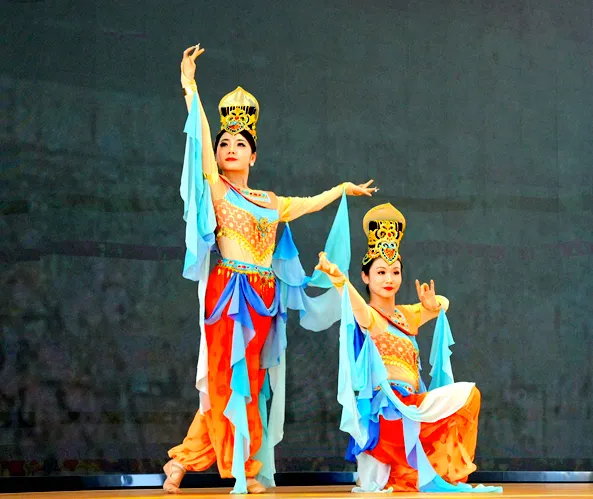 音乐会设“风光”“风情”“风骨”三大篇章,创新采用“列车旅行”情景设定。以“坐着火车游新疆”为主线,用可灵活组合的火车座椅搭建沉浸式场景,“列车员”与“游客”串联全场,带领观众透过诗与音领略新疆自然美景与人文底蕴。《博格达峰》《北庭故城》等作品轮番上演,演员们以铿锵语调传递对新疆文化的崇敬。