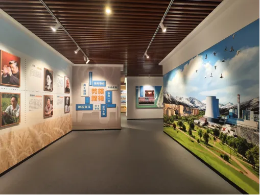 展厅位于工人文化宫三楼,作为开发区劳动者的精神阵地,系统呈现了百年工运的历史脉络,诠释了劳模精神的核心内涵,并生动展示了准东开发区的发展历程与建设成就。
