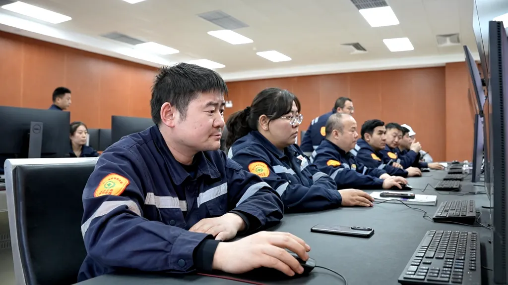3月13日,记者来到新疆宜化新建成的动力站。远远望去,只见蓝天白云下,集控楼、主厂房、烟囱等设施都布局有序、色调明快,勾勒出一道现代工业风景线。在集控楼中控室内,工作人员正专注监控大屏上跃动的温度、压力等实时数据;一旁的运转车间设备轰鸣、运转有序,展现出自动化生产的高效便捷。
