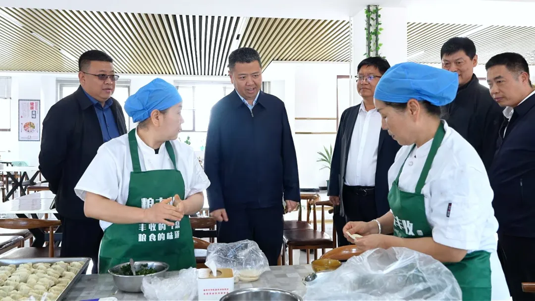 邱东在火烧山社区查看干部职工食堂情况,详细了解社区工作人员就餐条件。记者毕金录 摄