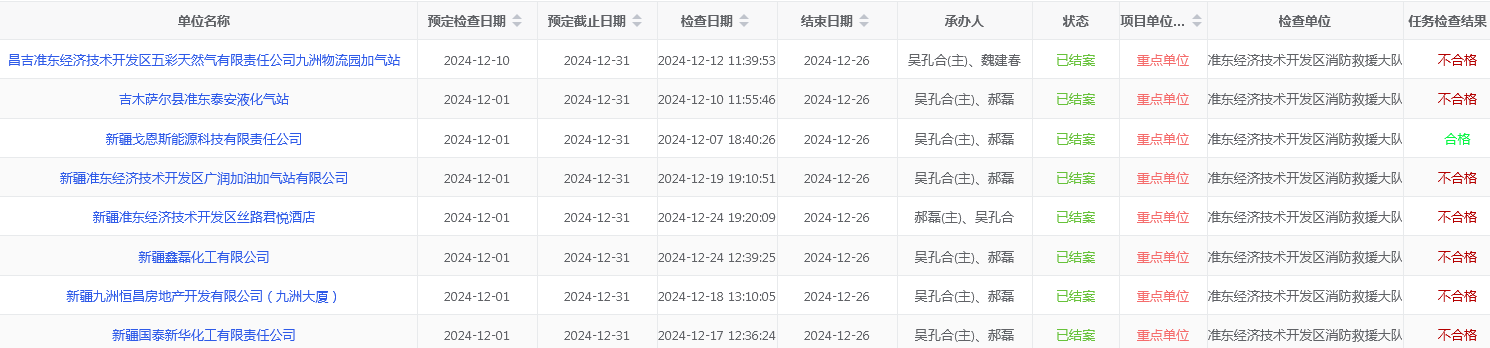 准东经济开发区消防救援大队2024年12月“双随机、一公开”公示