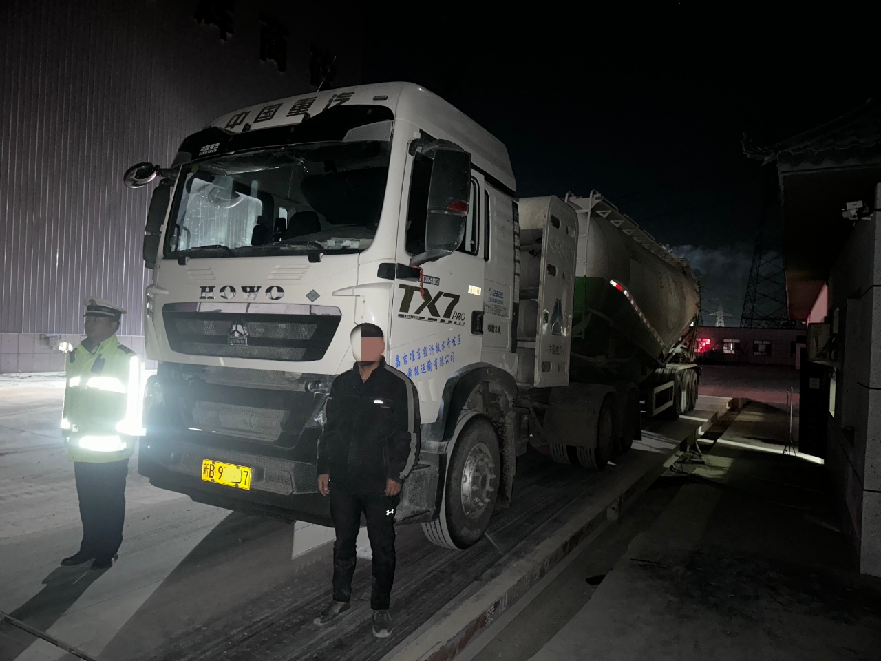 案例一:2025年11月3日0时28分,准东交通管理大队巡逻至Z917线5公里处时,发现一辆号牌为新B9***7的重型半挂牵引车涉嫌超载。随后,将该车辆带至检测站进行过磅检测,经检测,该车核载49000千克,实载63720千克,超过核载质量的30.04%。