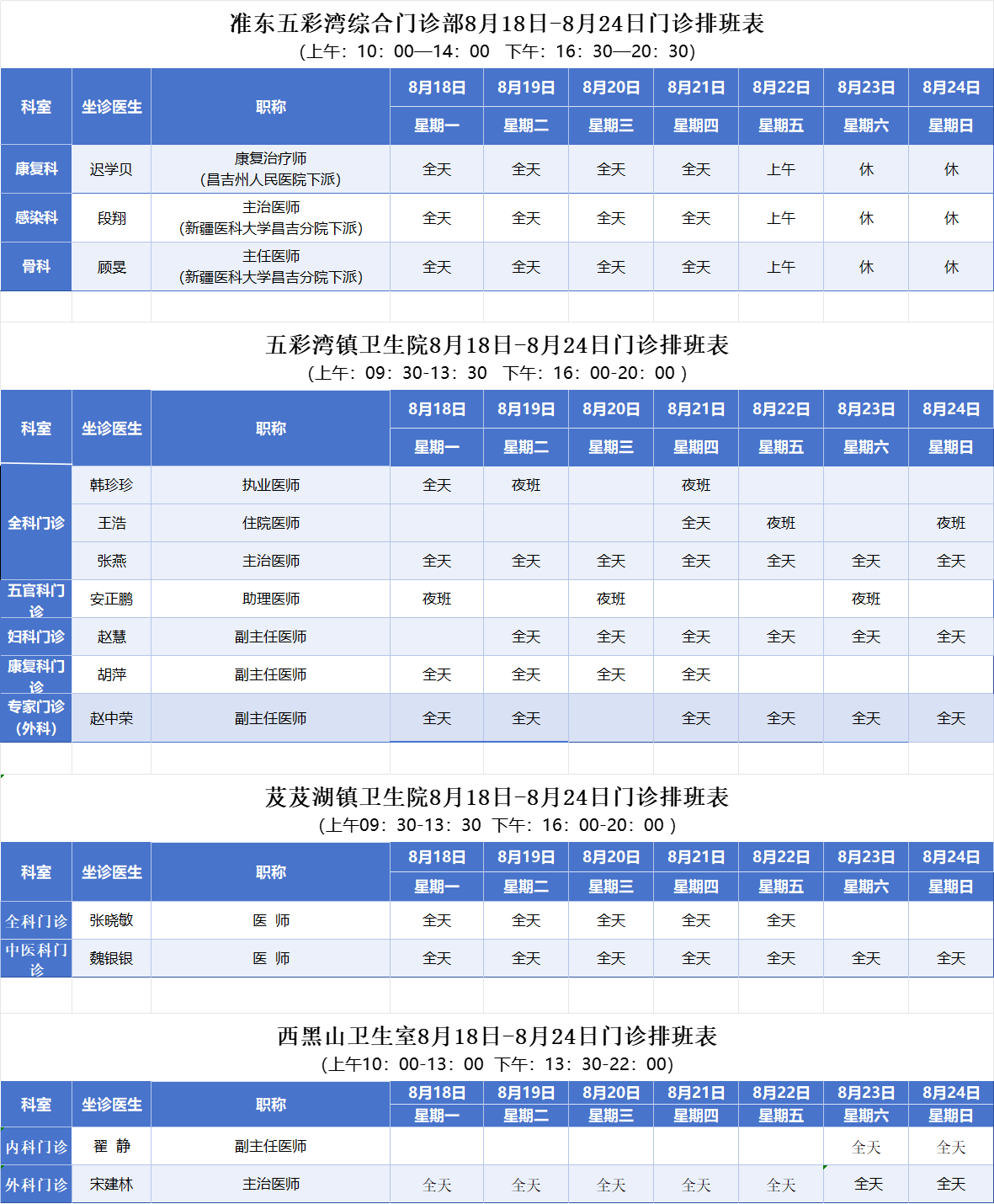【健康福音】准东开发区公立医疗机构门诊排班(8.18-8.24)