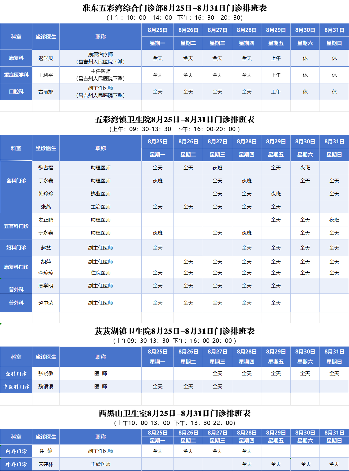 注:个别专家出诊时间如有变动,以当日坐诊医生为主。