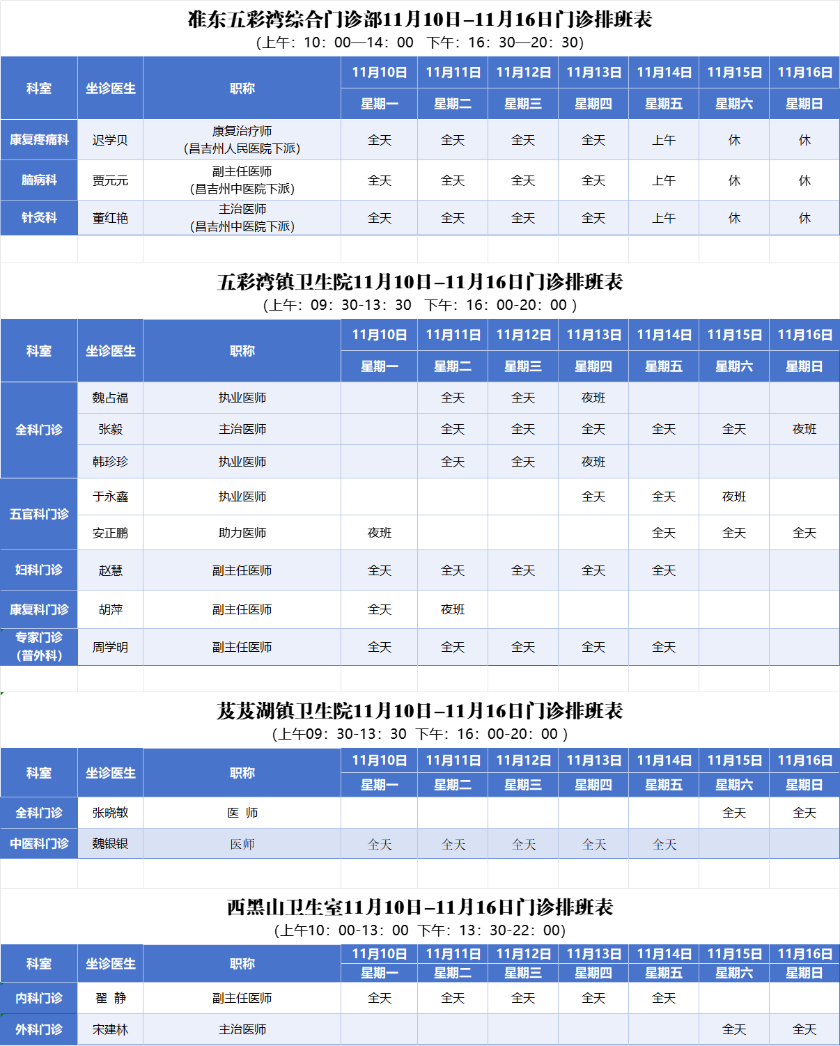 【健康福音】准东开发区公立医疗机构门诊排班(11.10-11.16)
