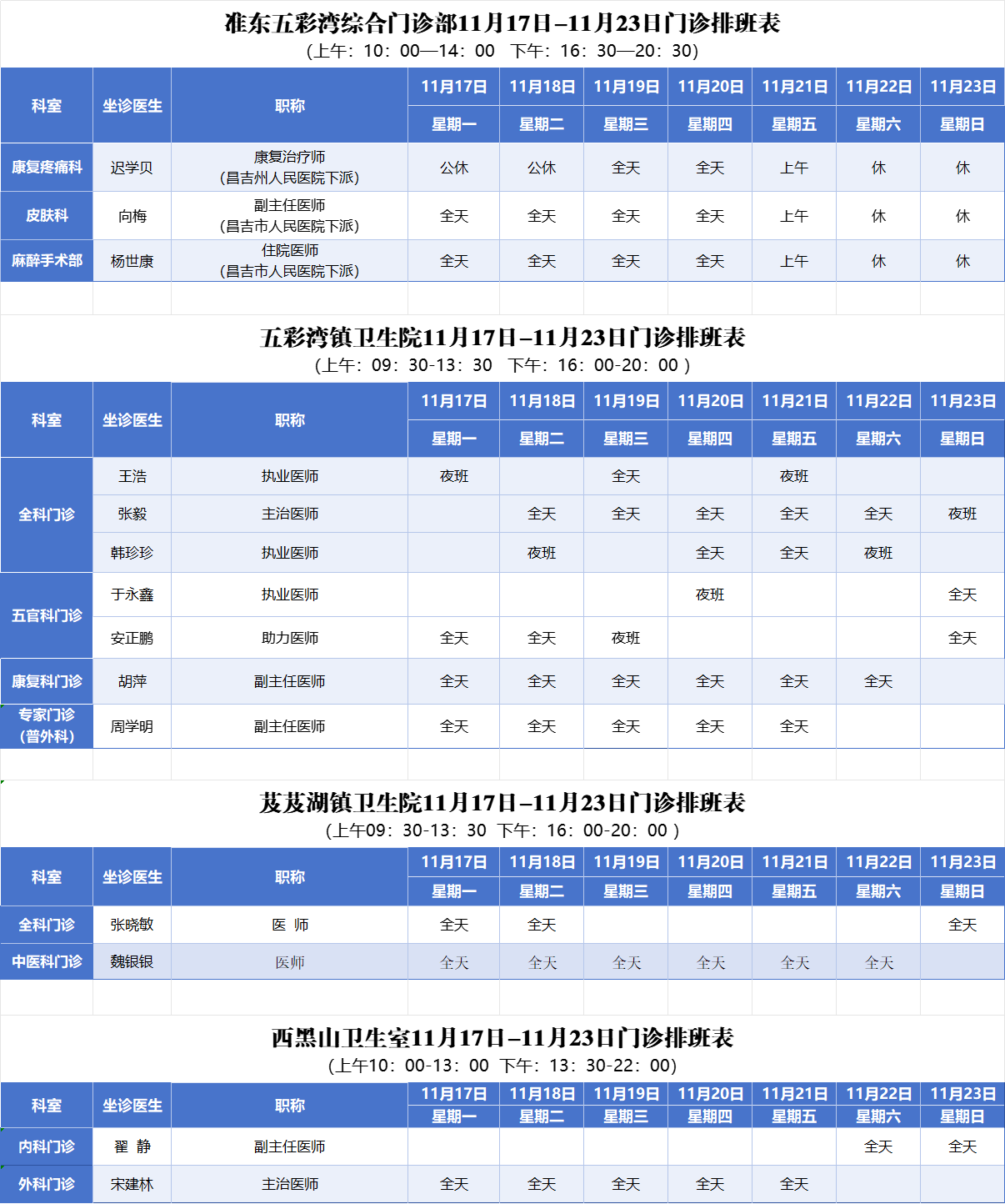 【健康福音】准东开发区公立医疗机构门诊排班(11.17-11.23)