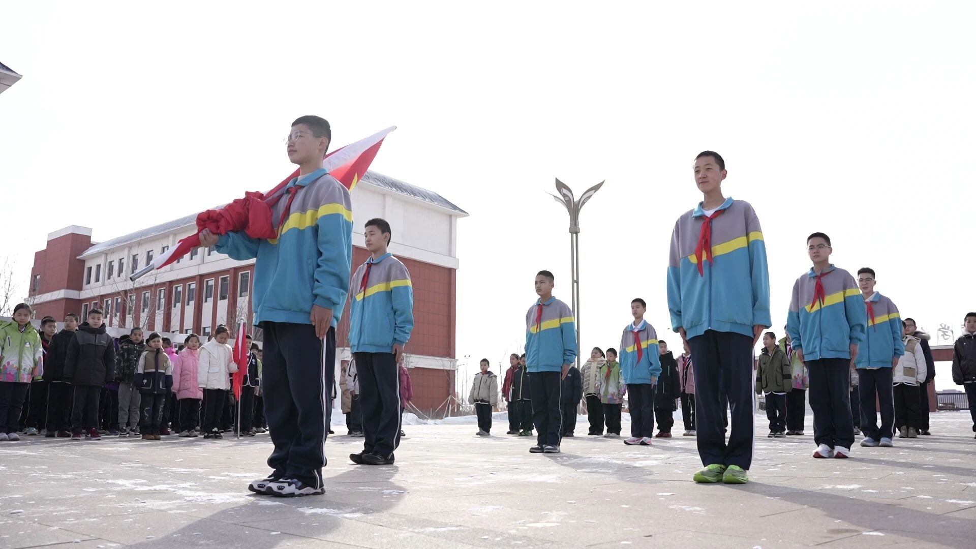 中午大课间,新学期第一次升国旗仪式隆重举行,成为开学首日最具感染力的育人场景。伴随着雄壮激昂的《义勇军进行曲》,五星红旗冉冉升起、迎风飘扬,全体师生肃立致敬、高声齐唱国歌,目光所及皆是信仰,步履所行皆为担当。国旗下讲话以“铸牢共同体,奋进新征程”为核心,传递学校育人初心与新学期奋进号召,全体师生集体诵读、庄严宣誓,铿锵誓言响彻校园,不仅厚植了爱国主义情怀、凝聚了民族团结力量,更凝聚起全校师生奋勇争先、笃行实干的强大合力,为新学期凝心聚力、培根铸魂。