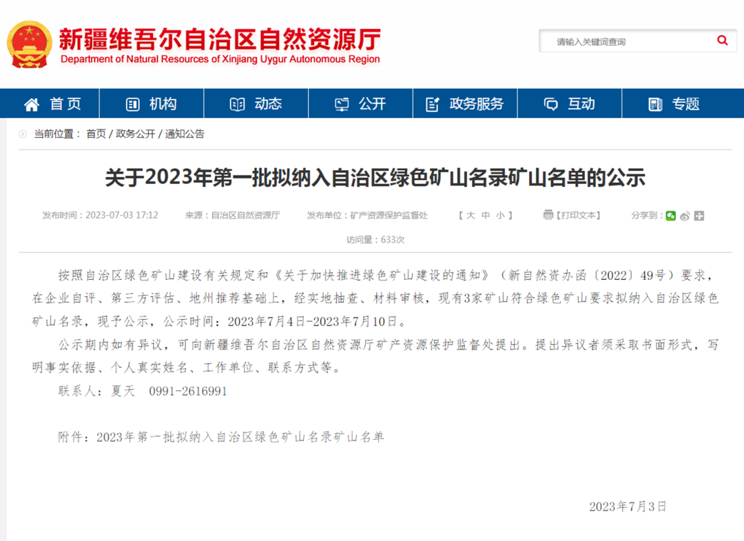 近日,自治区自然资源厅网站发布《关于2023年第一批拟纳入自治区绿色矿山名录矿山名单的公示》,新疆天池能源有限责任公司将军戈壁二号露天煤矿及新疆金能矿业有限公司奇台县黑山头露天矿位列其中。至此,准东开发区9家生产矿山中,已有5家创建为国家级绿色矿山,2家创建为自治区级绿色矿山,占昌吉州创建绿色矿山总数的77.7%,标志着准东开发区绿色矿山集群建设取得阶段性成果,有效推动了开发区经济高质量发展。