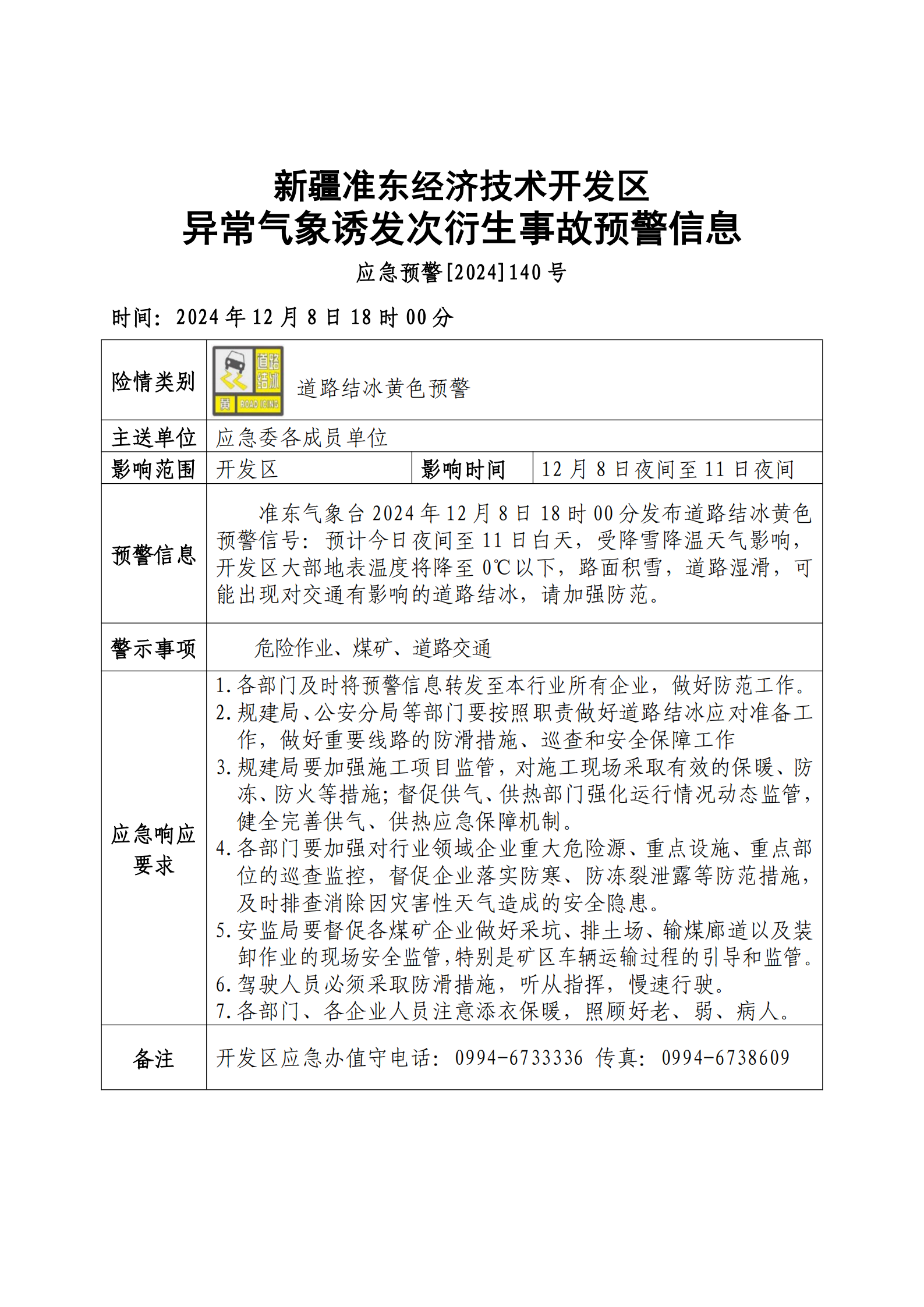 新疆准东经济技术开发区异常气象诱发次衍生事故预警信息