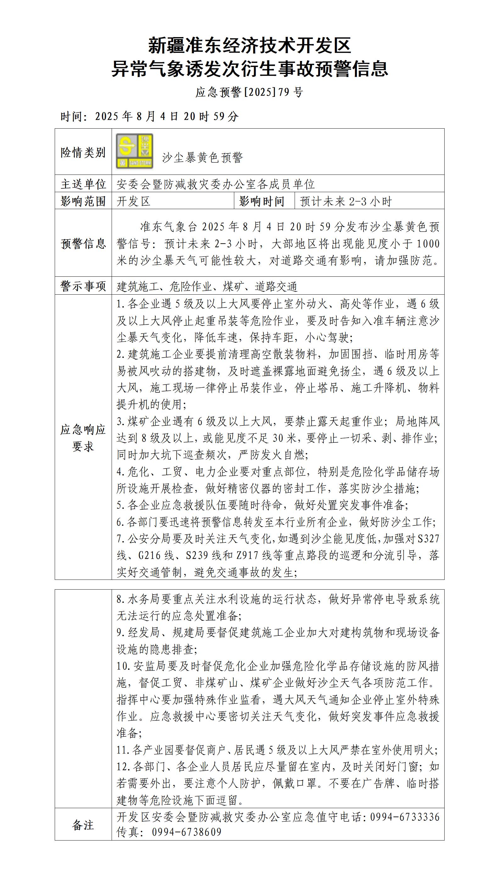 新疆准东经济技术开发区异常气象诱发次衍生事故预警信息