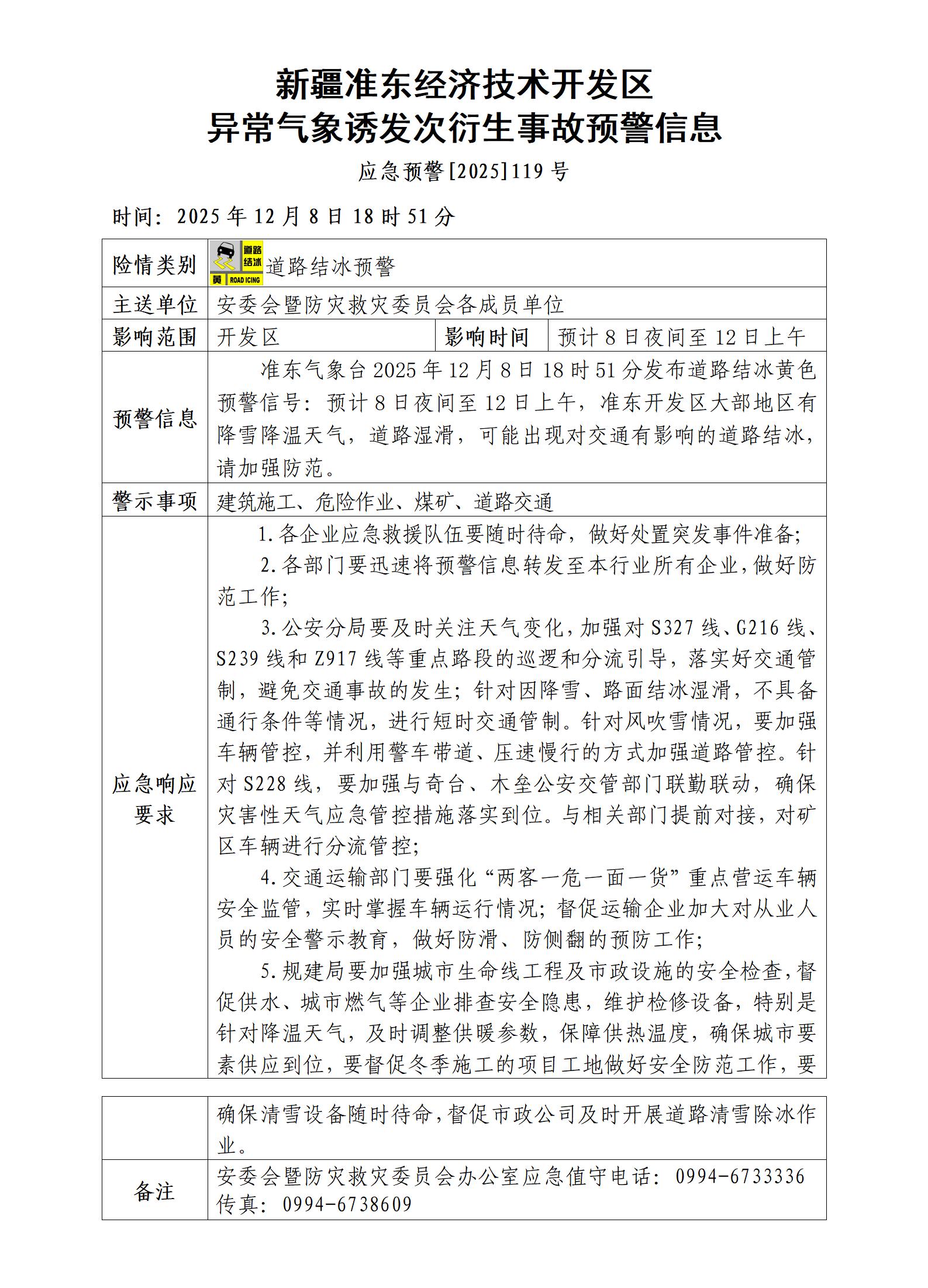 新疆准东经济技术开发区异常气象诱发次衍生事故预警信息