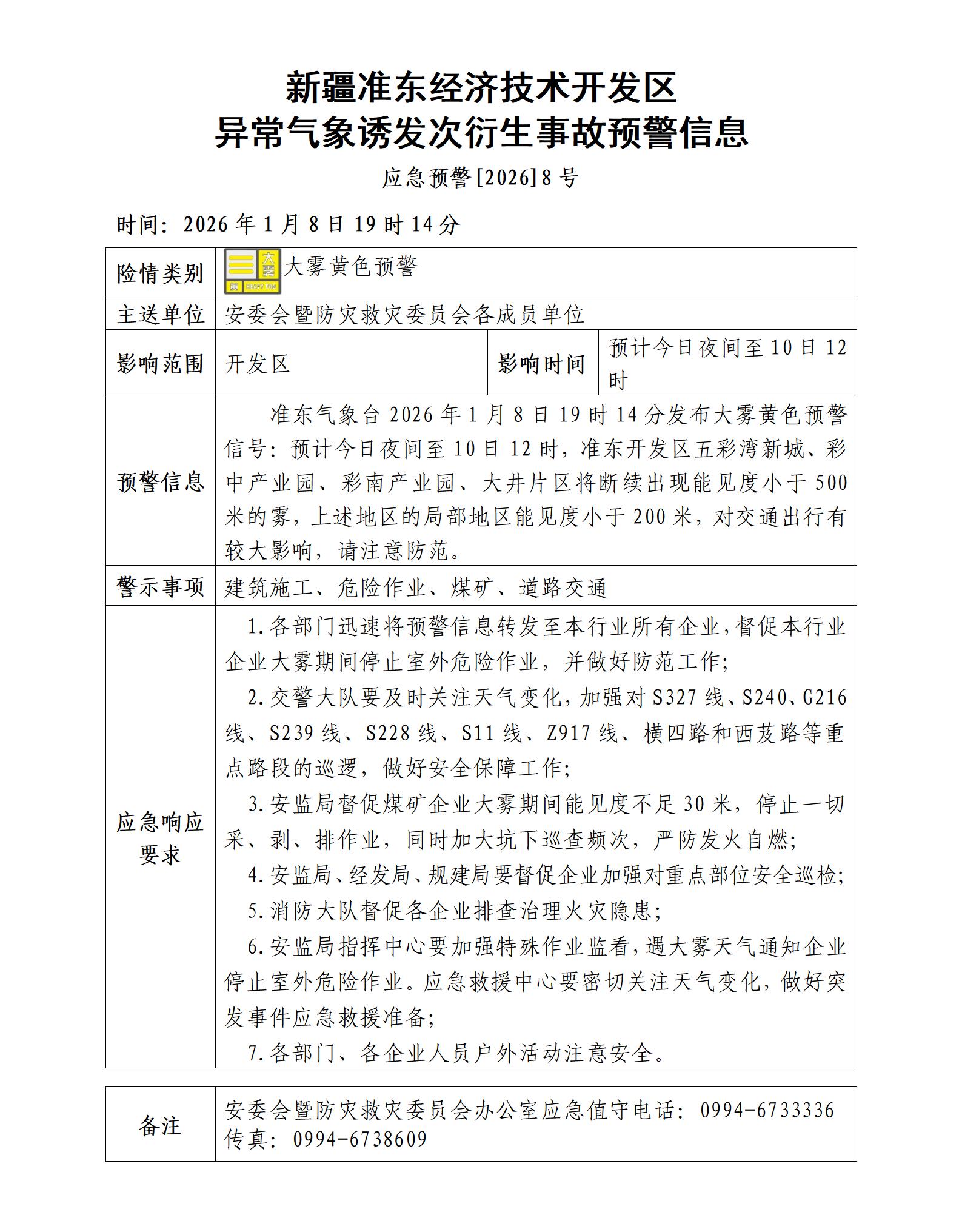 新疆准东经济技术开发区异常气象诱发次衍生事故预警信息