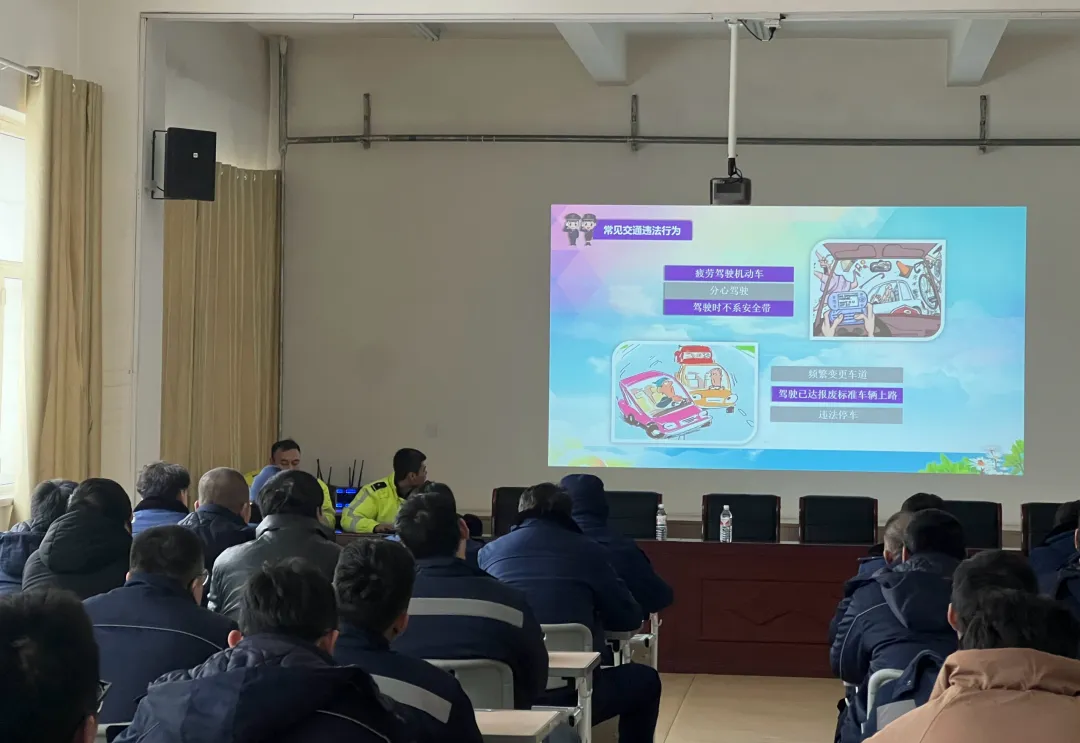 针对春运期间易发生的酒驾醉驾、超速超员、疲劳驾驶、不按规定让行等违法行为,交警深入讲解其后果与处罚标准,并介绍恶劣天气下高速路段的安全驾驶技巧,引导员工主动规避出行风险;重申车辆限速、行人优先、规范停车等规定,针对叉车、货车等作业车辆,加强安全操作规范培训,切实防范厂区内各类安全隐患。