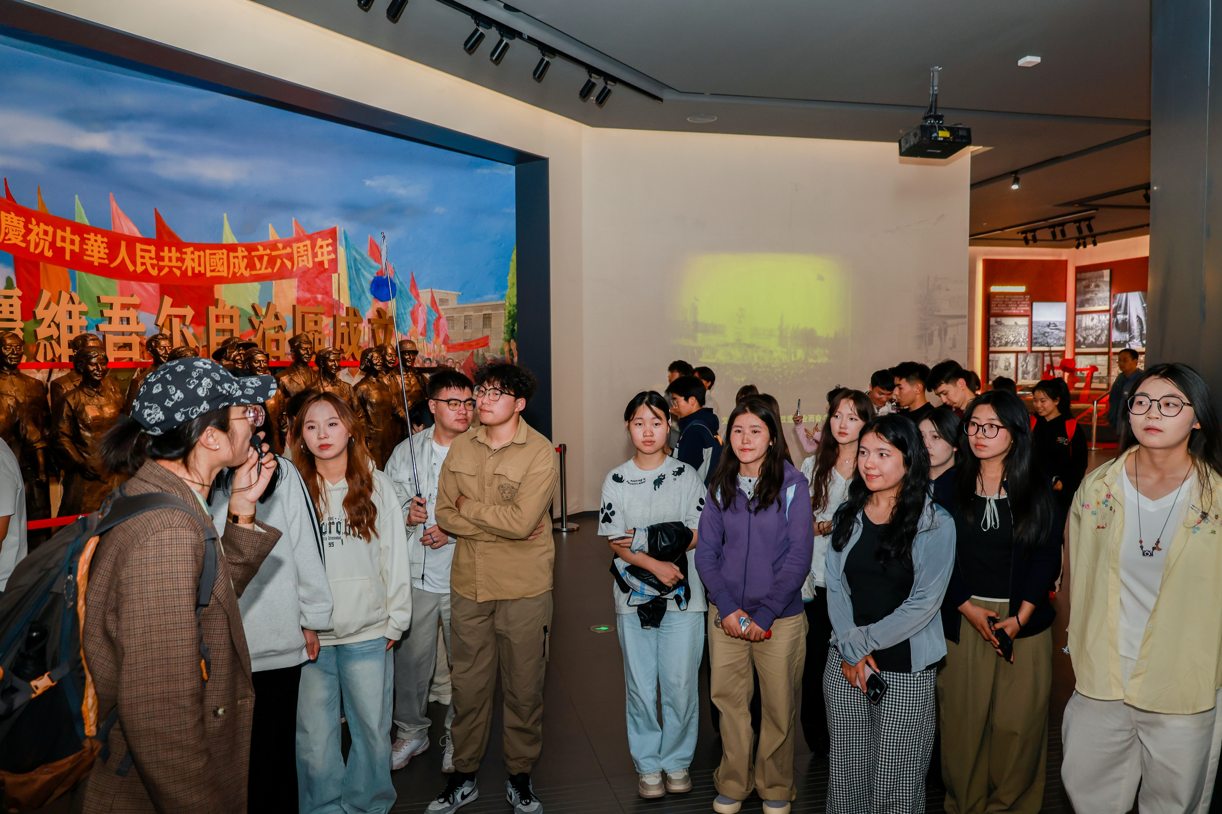 在新疆博物馆,师生们近距离参观“五星出东方利中国”锦护臂等珍贵文物,了解各民族守望相助、交往交流交融的历史故事,感受中华文明多元一体与新疆地域文化的独特魅力,进一步凝聚文化共识、厚植爱国情怀、坚定文化自信。