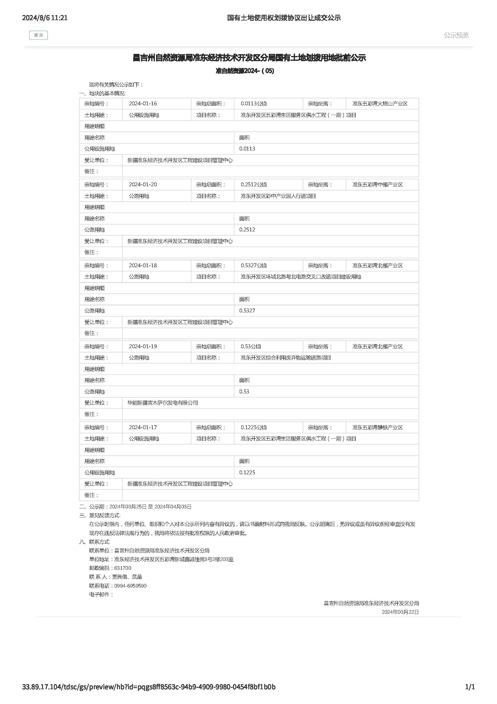 准自然资源2024-(05) 昌吉州自然资源局准东经济技术开发区分局国有土地划拨用地批前公示