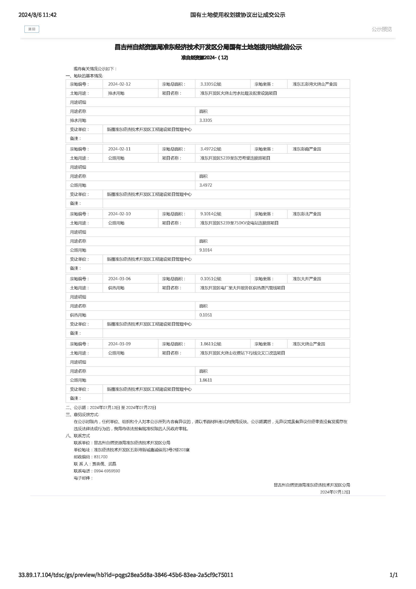 准自然资源2024-(12) 昌吉州自然资源局准东经济技术开发区分局国有土地划拨用地批前公示